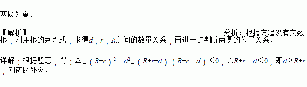 已知:关于x的一元二次方程x2﹣(R+r)x+ d2=0没有实数根,其中R、r分别为⊙O1和⊙O2的半径,d为此两圆的圆心距,则⊙O1和⊙O2的位置关系为_____.