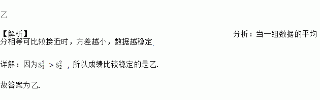 老师对甲乙两人五次的数学测试成绩进行统计,得出甲乙两人五次测试的平均分别为91分和92分,他们的方差分别是,.则成绩比较稳定的是 _______.