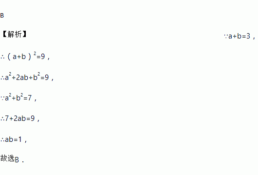 若a+b=3,a2+b2=7,则ab等于( )
