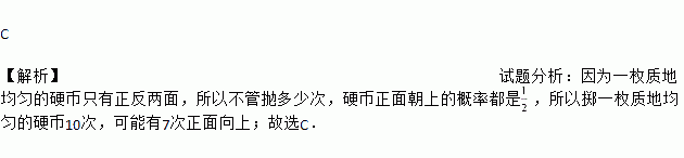 C. 可能有7次正面向上 D. 不可能有10次正面向上