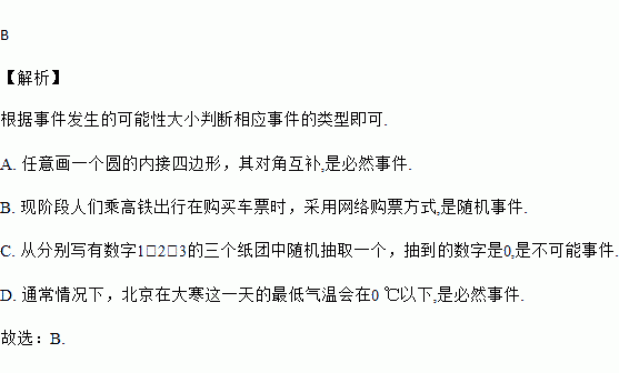 C. 从分别写有数字1,2,3的三个纸团中随机抽取一个,抽到的数字是0