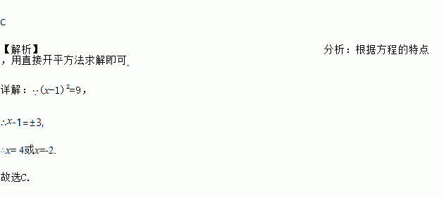 一元二次方程(x-1)2=9的解为( )
