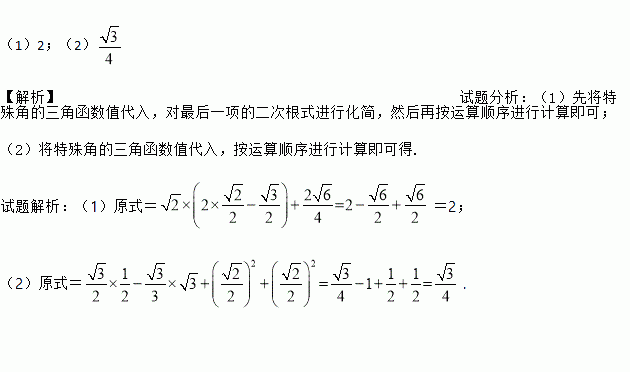 (2)sin 60°·cos 60°-tan 30°·tan 60°+sin245°+cos245°.
