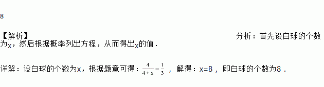 在一个不透明的盒子中装有4个红球和若干个白球,它们除颜色不同外,其余均相同.若从中随机摸出一个球是红球的概率是,则白球的个数是_____.