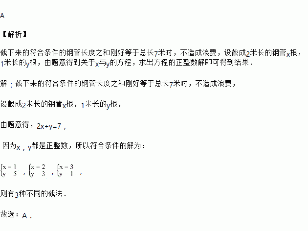 把一根7米的钢管截成1米长和2米长两种规格的钢管,有几种不同的截法?( )