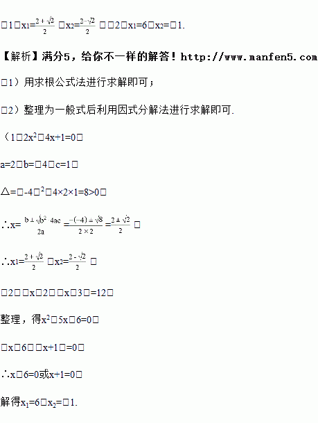 (1)2x2﹣4x+1=0; (2)(x﹣2)(x﹣3)=12;