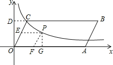 £¨3£©¼ÙÉè´æÔÚËıßÐÎOEPFÓпÉÄÜΪÁâÐΣ¬¹ýµãP×÷PG¡ÍxÖáÓÚµãG£¬¸ù¾ÝPE¡ÎxÖᣬPF¡ÎOC¿ÉÖªËıßÐÎOEPFÊÇÆ½ÐÐËıßÐΣ®ÉèOE=PE=2x£¬ÓÉ¡ÏCOA=60¡ã¿ÉÖªFG=x£¬PG=$\sqrt{3}$x£¬¹ÊP£¨3x£¬$\sqrt{3}$x£©£¬ÔÙÓɵãPÔÚ·´±ÈÀýº¯ÊýµÄͼÏóÉÏÇó³öxµÄÖµ¼´¿É£®