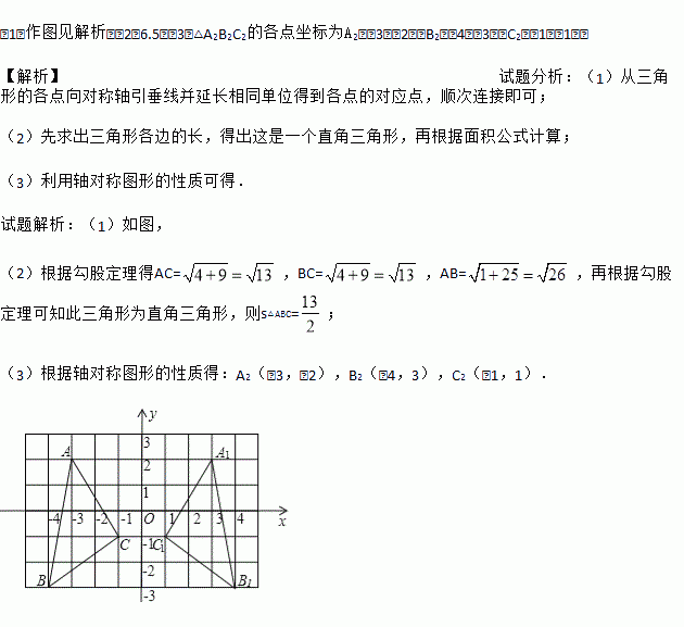 (3)直接写出△ABC关于x轴对称的三角形△A2B2C2的各点坐标.