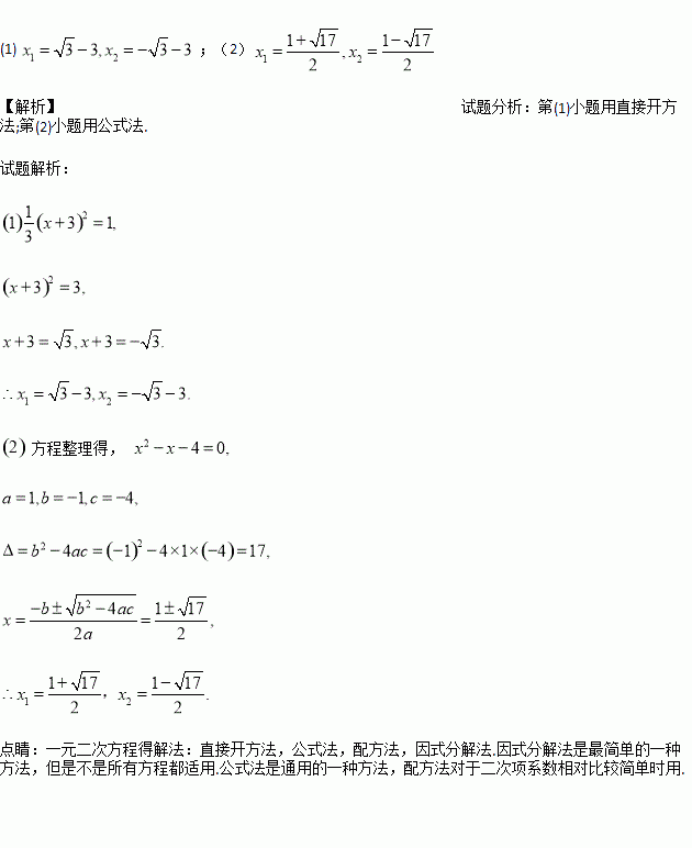 解方程:(1) (2)x(x-2)=4-x.