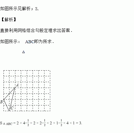 如图,在边长为1的正方形网格中,作一个三边长分别为、、的三角形,并求出此三角形的面积.