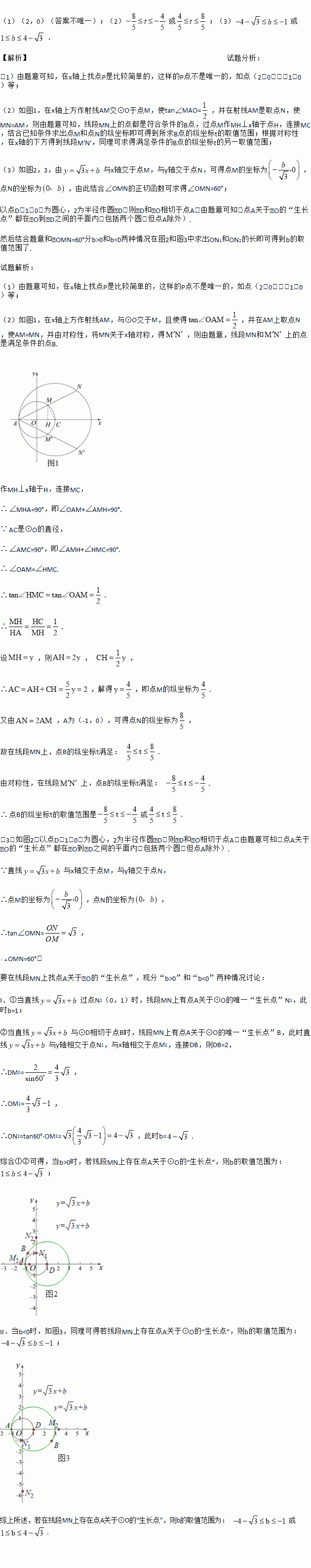 (1)若点P是点A关于⊙O的“生长点”,且点P在x轴上,请写出一个符合条件的点P的坐标________;