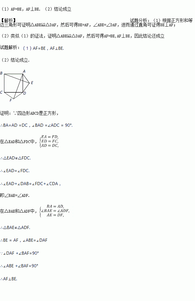如图1,在正方形ABCD的外侧,作两个等边三角形ADE和DCF,连接AF,BE.