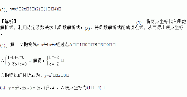 求(1)求抛物线的解析式;(2)求抛物线的顶点坐标.