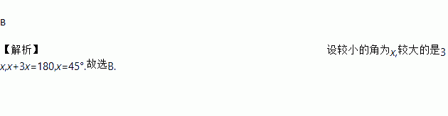 若平行四边形中有两个内角的度数比为1∶3,则其中较小的内角是( )