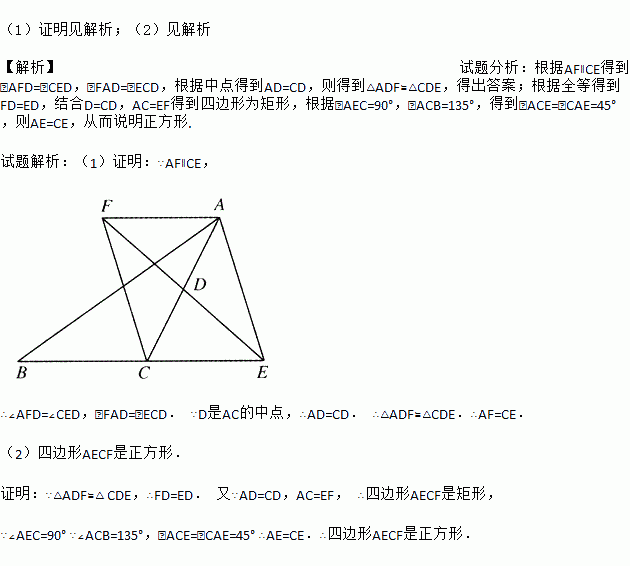 (2)如果AC=EF,且∠ACB=135°,试判断四边形AFCE是什么样的四边形,并证明你的结论