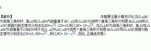 若△ABC中,AB=7,AC=8,高AD=6,则BC的长是( )