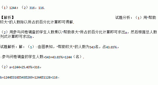 ΪÁ˽⡰Êýѧ˼Ïë×÷ÎĶÔѧϰÊýѧ°ïÖúÓжà´ó£¿¡±Ò»Ñо¿Ô±Ëæ»ú³éÈ¡ÁËÒ»¶¨ÊýÁ¿µÄ¸ßУ´óһѧÉú½øÐÐÁËÎʾíµ÷²é£¬²¢½«µ÷²éµÃµ½µÄÊý¾ÝÓÃÏÂÃæµÄÉÈÐÎͼºÍ±íÀ´±íʾ£¨Í¼¡¢±í¶¼Ã»ÖÆ×÷Íê³É£©£®
