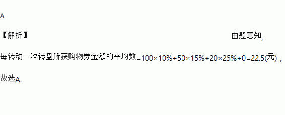 转盘游戏中,小颖根据实验数据绘制出下面的扇形统计图,则每转动一次转盘所获购物券金额的平均数是( )