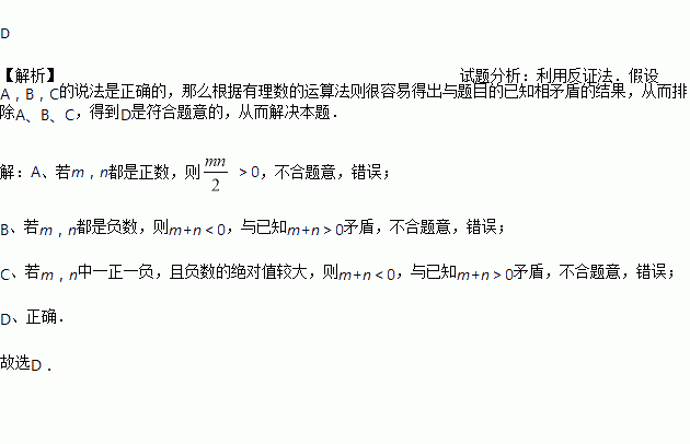 C. m、n都是负数 D. m、n中一正一负,且正数的绝对值较大
