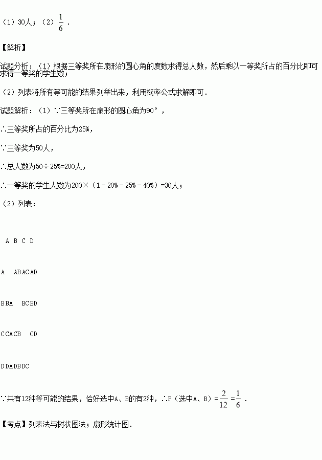 (2)在本次知识竞赛活动中,A,B,C,D四所学校表现突出,现决定从这四所学校中随机选取两所学校举行一场足球友谊赛,请用画树状图或列表的方法求恰好选到A,B两所学校的概率.