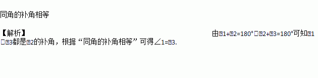 ∠1+∠2=180°,∠2+∠3=180°,根据________________________,得∠1=∠3.
