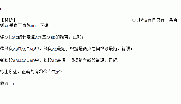 ③线段AB,AC,AD中,线段AC最短,根据是两点之间线段最短;