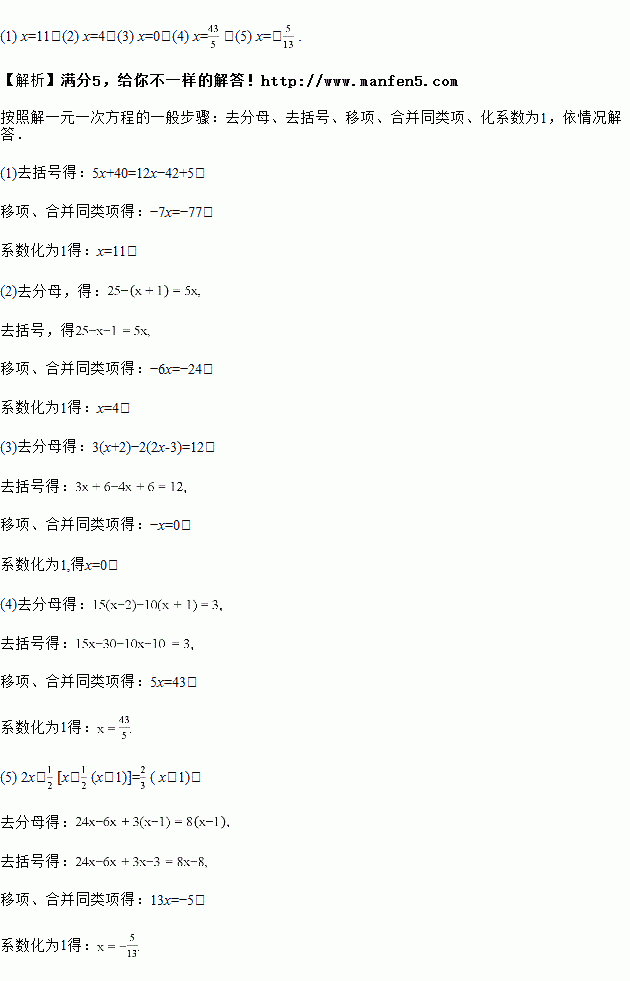 (1) 5(x+8)=6(2x-7)+5;