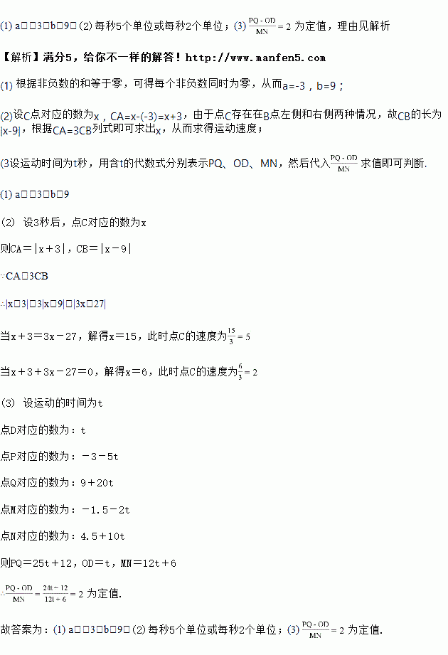 (3) 点D以1个单位每秒的速度从点O向右运动,同时点P从点A出发以5个单位每秒的速度向左运动,点Q从点B出发,以20个单位每秒的速度向右运动.在运动过程中,M、N分别为PD、OQ的中点,问