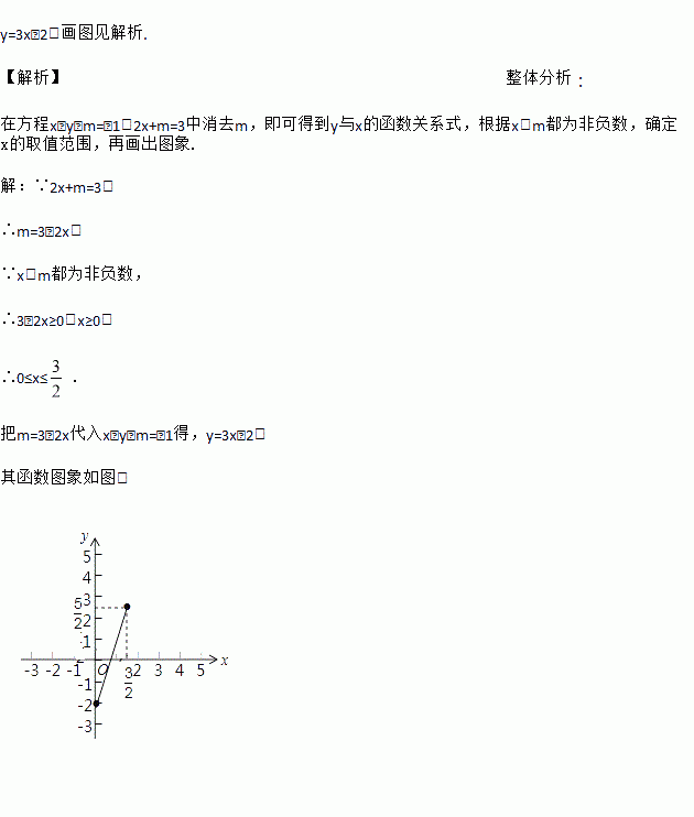 若x,m都为非负数,x﹣y﹣m=﹣1,2x+m=3.求y与x的函数关系式,并画出此函数的图象.
