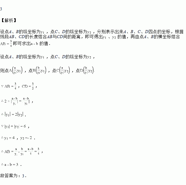 如图,已知点A、C在反比例函数的图象上,点B,D在反比例函数的图象上,,轴,AB,CD在x轴的两侧,,,AB与CD间的距离为6,则的值是______.