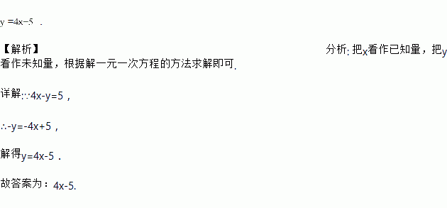 已知 4x-y ?5,用 x 表示 y,得 y=_______.