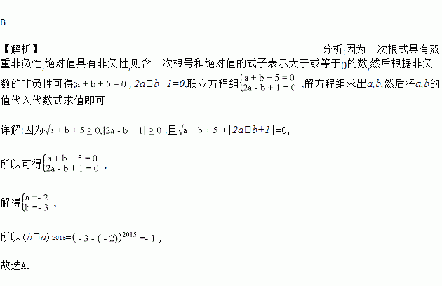 若+|2a﹣b+1|=0,则(b﹣a)2016的值为( )