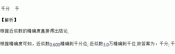 (1)由四舍五入得到的近似数0.600精确到________位;(2)近似数3.0万精确到________位.