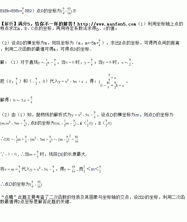 (2)若点D是抛物线在x轴下方图象上的动点,过点D作x轴的垂线,与直线BC相交于点E.当线段DE的长度最大时,求点D的坐标.