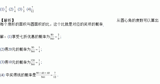 “十一”黄金周期间,某购物广场举办迎国庆有奖销售活动,每购物满100元,就会有一次转动大转盘的机会,请你根据大转盘(如图)来计算:
