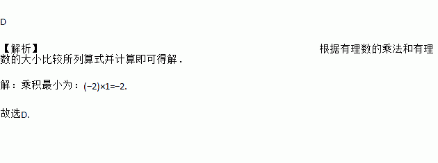 、0、1、-2,任取两个相乘,积最小为 ( )