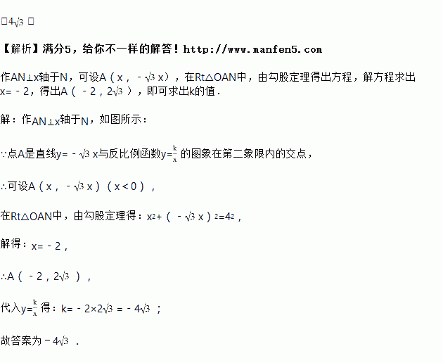 如图,点A是直线y=﹣x与反比例函数y=的图象在第二象限内的交点,OA=4,则k的值为_____.