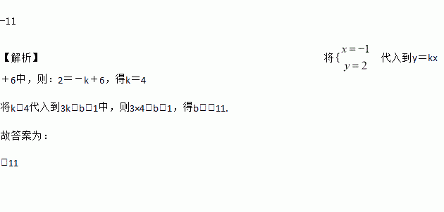 孔明同学在解方程组的过程中,错把b看成了6,他其余的解题过程没有出错,解得此方程组的解为,又已知3k+b=1,则b正确值应该是_________.
