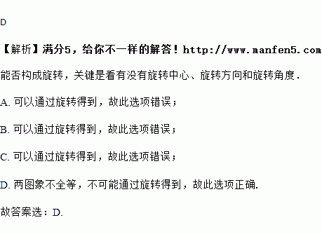下列图形中,哪一个右边的图形不能通过左边的图形旋转得的( )