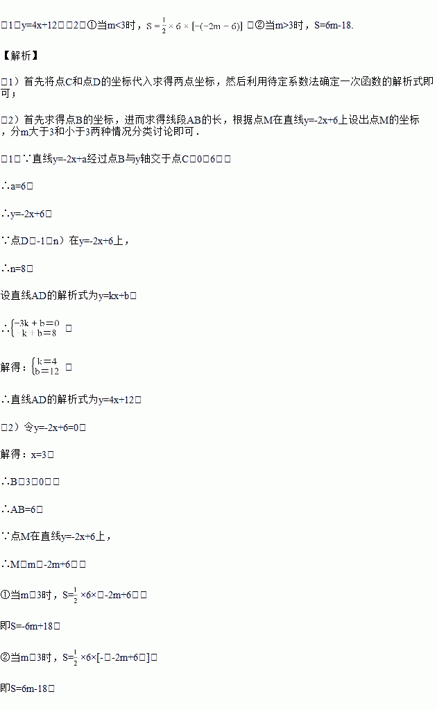 (0, 6),直线AD与直线y=-2x+a相交于点D(-1,n).![]()