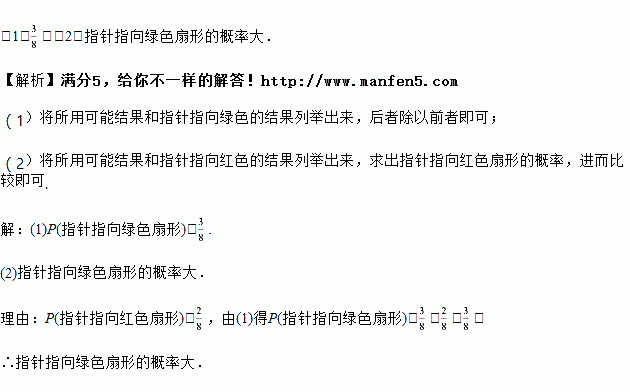 (2)指针指向红色扇形的概率大,还是指向绿色扇形的概率大?为什么?