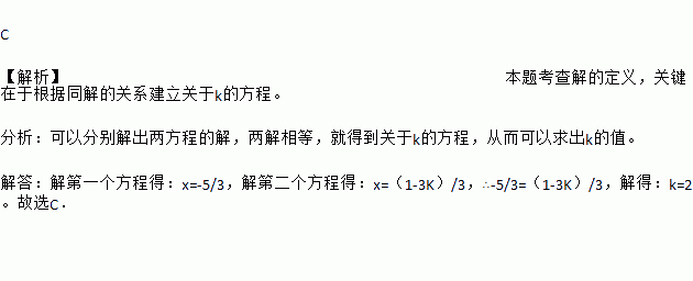 关于的方程3+5=0与3+3=1的解相同,则等于( )