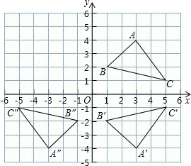 纵坐标都不变,横坐标都乘以-1,得:A″(-3,4)、B″(-1,2)、C″(-5,1),