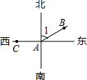 分析:利用∠BAC=150°,得出∠1的度数,进而求出B地与A地的位置关系.
