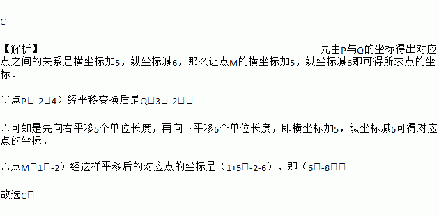 如果点P(-2,4)经平移变换后是Q(3,-2),则点M(1,-2)经这样平移后的对应点的坐标是( )