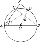 (2)连接CB交OD于点E,由于AB是直径,可知∠ACB=90°,结合(1)中的内容,易证四边形CEDP是矩形,于是DP=CE,∠CED=90°,即OD⊥CB,而OD∥AP,OA=OB,利用平行线分线段成比例定理的推论,可证CE=BE,在Rt△ABC中,