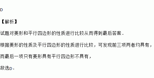 A. 对角相等 B. 对角线互相平分 C. 对边平行且相等 D. 对角线互相垂直