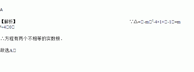 A 【解析】∵△=(-m)2-4×1×(-1)=m ²+4>0, ∴方程有两个不相等的实数根. 故选A.