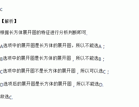 如图,将长方体的表面展开,得到的平面图形不可能是( )