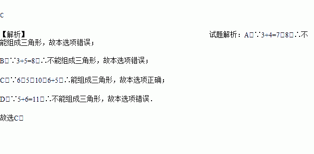 A. 3cm、4cm、8cm B. 3cm、5cm、8cm C. 5cm、6cm、10cm D. 5cm、6cm、11cm
